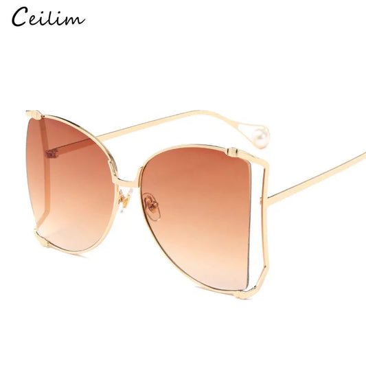 Fashion Oversize Pearl Cat Eye _ Butterfly Sunglasses