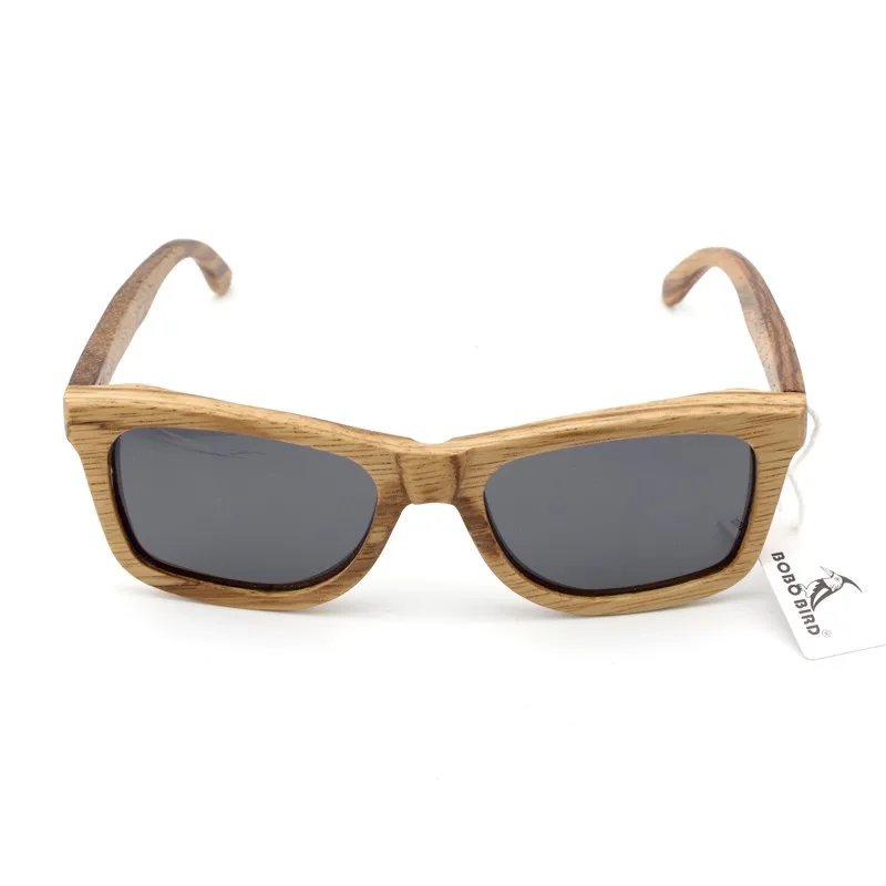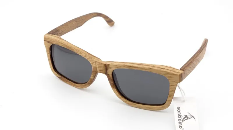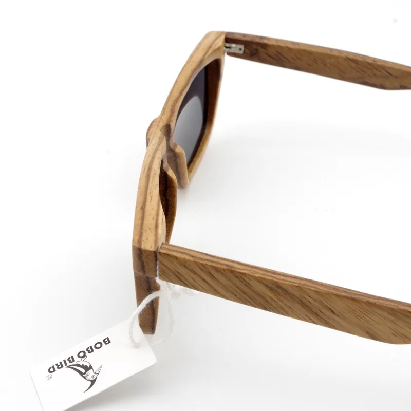 BOBO BIRD Polarized Wood Bamboo Sunglasses _ Square In Gift Box