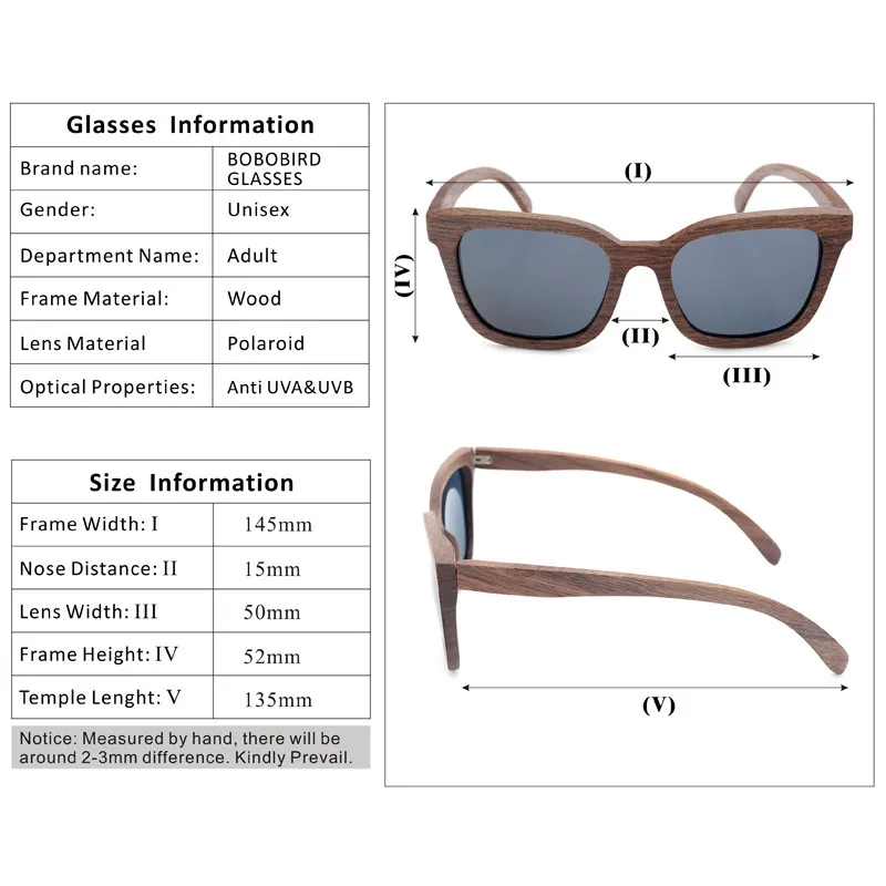 BOBO BIRD Top Brand New Sunglasses Men Women Wood Black Walnut Retro Sun glasses with Wooden Box Fishing Oculos C-AG010a
