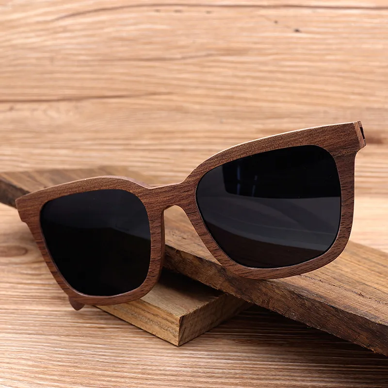 BOBO BIRD Retro Black Walnut Wood Sunglasses _ with Wooden Box